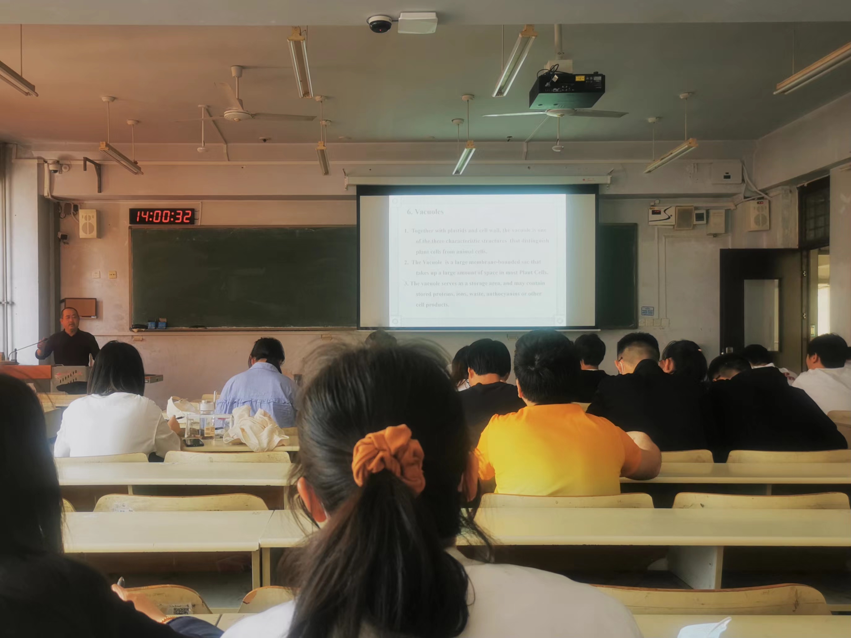 课堂上,李军老师精心设计教学过程,利用板书与多媒体相结合,讲授与课堂提问等课堂互动形式相结合,充分调动学生的积极性,课堂学生参与度高,课堂气氛活跃,让同学们既了解了植物细胞结构等专业知识,又能掌握农学专业词汇,有效提升了专业英语水平。课后,听课教师与李军就教学设计、教学手段、课堂氛围等方面进行了沟通讨论。