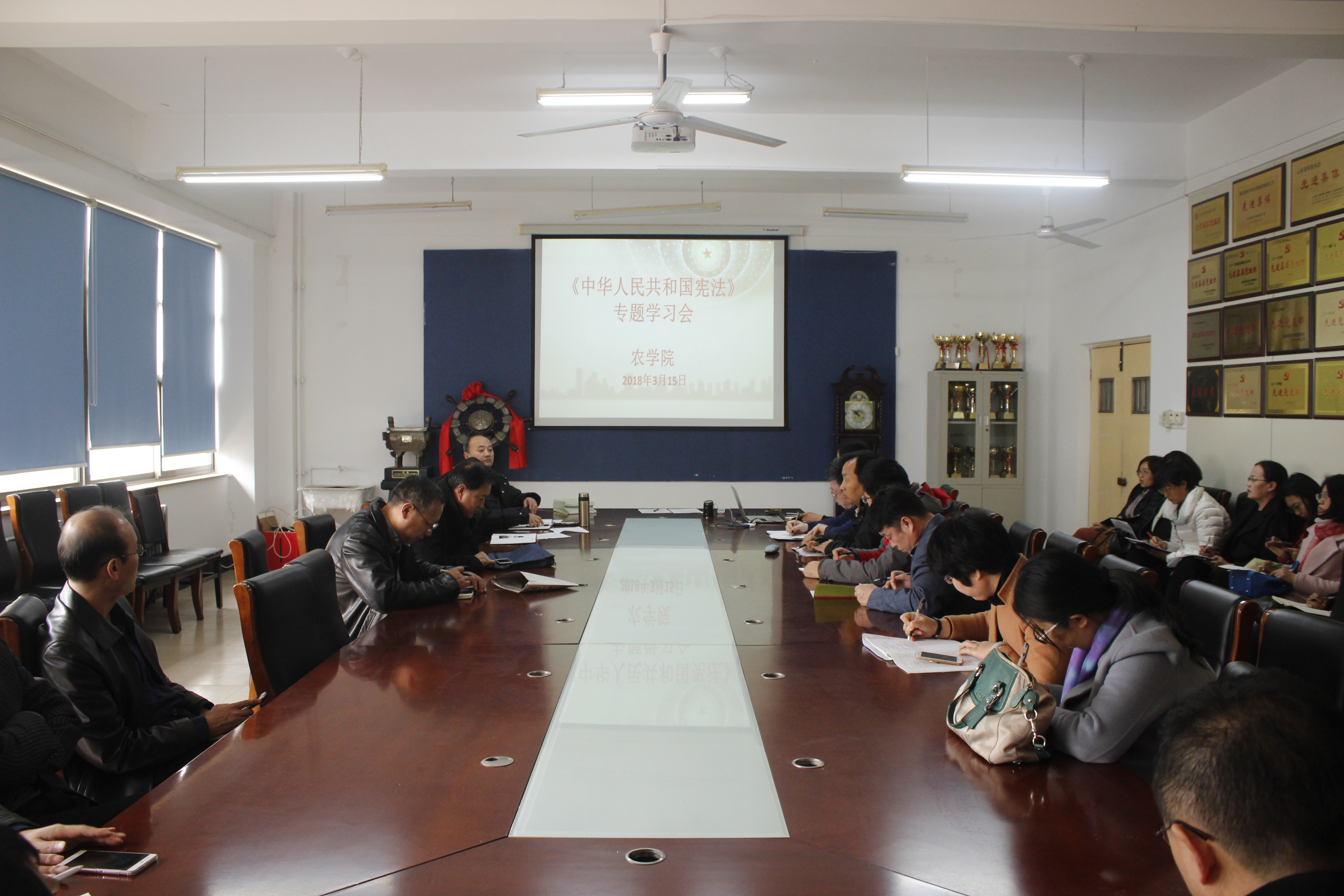 为深入学习贯彻党的十九大精神,大力宣传以宪法为核心的中国特色社会主义法律体系,切实引导广大教职员工牢固树立宪法意识,增强宪法观念。3月15日,williamhill中国在生物楼会议室召开《中华人民共和国宪法》专题学习会。会议由学院党总支书记张玉梅主持,williamhill中国全体教职工参加。