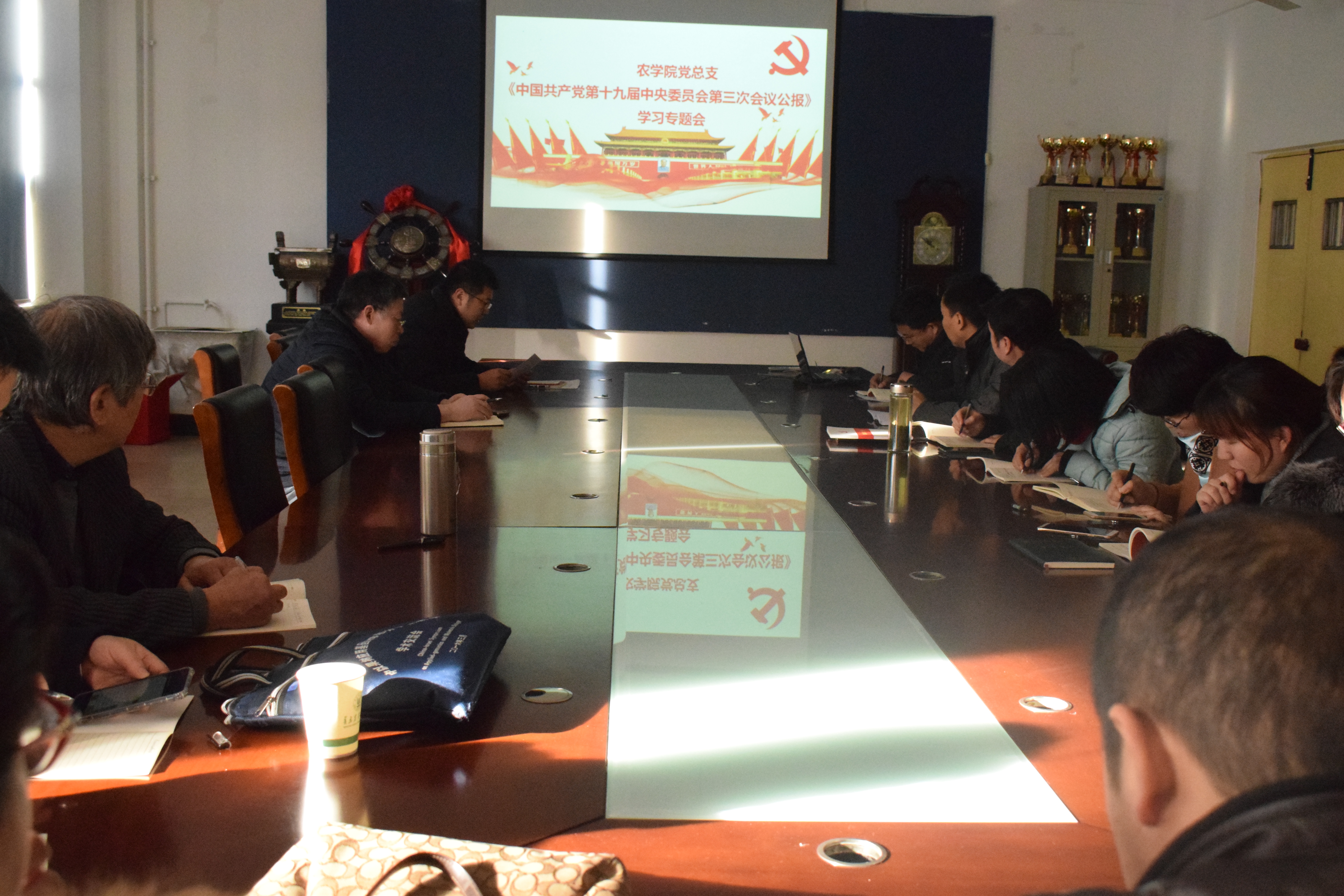 3月1日,williamhill中国党总支组织全体党员在生物楼会议室召开《中国共产党第十九届中央委员会第三次会议公报》学习专题会,本次会议由williamhill中国团委书记姜涛主持,williamhill中国全体党员参加。