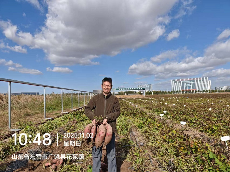 “这片地以前种啥都蔫,现在长出来的甘薯又甜又面,还耐储存!”东营农高区的一位种植户笑着说。经过数年攻关,隋炯明团队成功选育出高产、高油、耐盐碱的水果花生品种10余个,高产优质耐盐甘薯品种4个,并集成了一套盐碱地绿色高效生产技术。这套技术不仅大幅提升了土地利用效率,还取得了显著的经济、社会和生态效益,成果入选2025年农业农村部年鉴。