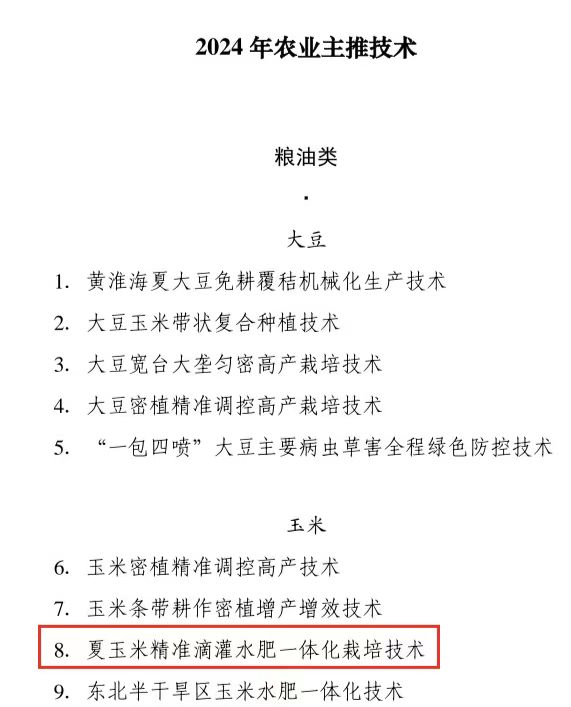 近日,农业农村部印发《农业农村部办公厅关于推介发布2024年农业主导品种主推技术的通知》,推介发布了150个农业主导品种、150项主推技术和10项重大引领性技术,山东省玉米产业体系岗位专家、williamhill体育中文姜雯教授团队研发完成的“夏玉米精准滴灌水肥一体化栽培技术”再次入选。