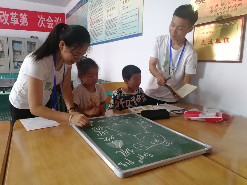 伴随着队员们的晨跑步点,社会实践的第一天开始了,第一天的支教调研生活让队员们感到惊喜无限。队员们精彩的自我介绍,拉进去小朋友的距离。许多趣味游戏,既增加了孩子们的知识,又增进了同学和队员之间的友谊。在授课方面,支教队员创新授课方法,以《经典咏流传》节目的形式教授孩子们古诗词,传播传统文化,取得斐然成果。 结束一天的授课后,大家在班长的带领下熟悉村落,为后期调研打下基础。在接下来的两天,队员们开始了正式的调研之路,通过与当地村民的亲切交谈,了解到实践地点的作物、家畜种植养殖情况以及当地村民的生活状况,并做了详细记录。在课程方面,分小组对孩子们进行了不同体育运动的教学实践,队员们给孩子们教授课外知识开阔了孩子们的眼界,也进一步增进了队员们和同学之间的友谊。