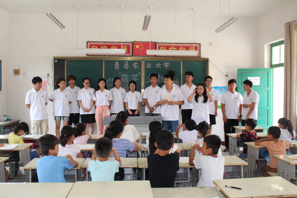 一进村,队员们便受到村支书的热情欢迎。大家在村支书的协助下,积极利用村内的广播工具进行队伍的宣传,为"萌芽"小分队的支教招募生源,村民们对"萌芽"队的教学抱有热切的希望,纷纷将自家小孩送来。同时,黄泥岗镇的乡书记也来帮助队员们开展工作,本以为会遇到的困难问题,在乡书记和村支书的热情帮助下变得容易许多。队员们的支教地点定在黄泥岗镇何仓小学的一间教室,许多小朋友的到来让队员们欣喜不已,孩子们的热情给予他们无线的动力。第一天相识,队员们便记下每位小朋友的名字,并与他们的父母取得联系。课堂上,每一位队员都做了自我介绍,用亲切的话语让自己成为孩子们最亲爱的哥哥姐姐。趣味运动会上,小朋友们活力无限、渴望真知,炎炎夏日抵挡不住他们的求知热情。绘画课上,小朋友们想象丰富、独具风格,一笔一画间透露着他们对艺术的好奇。