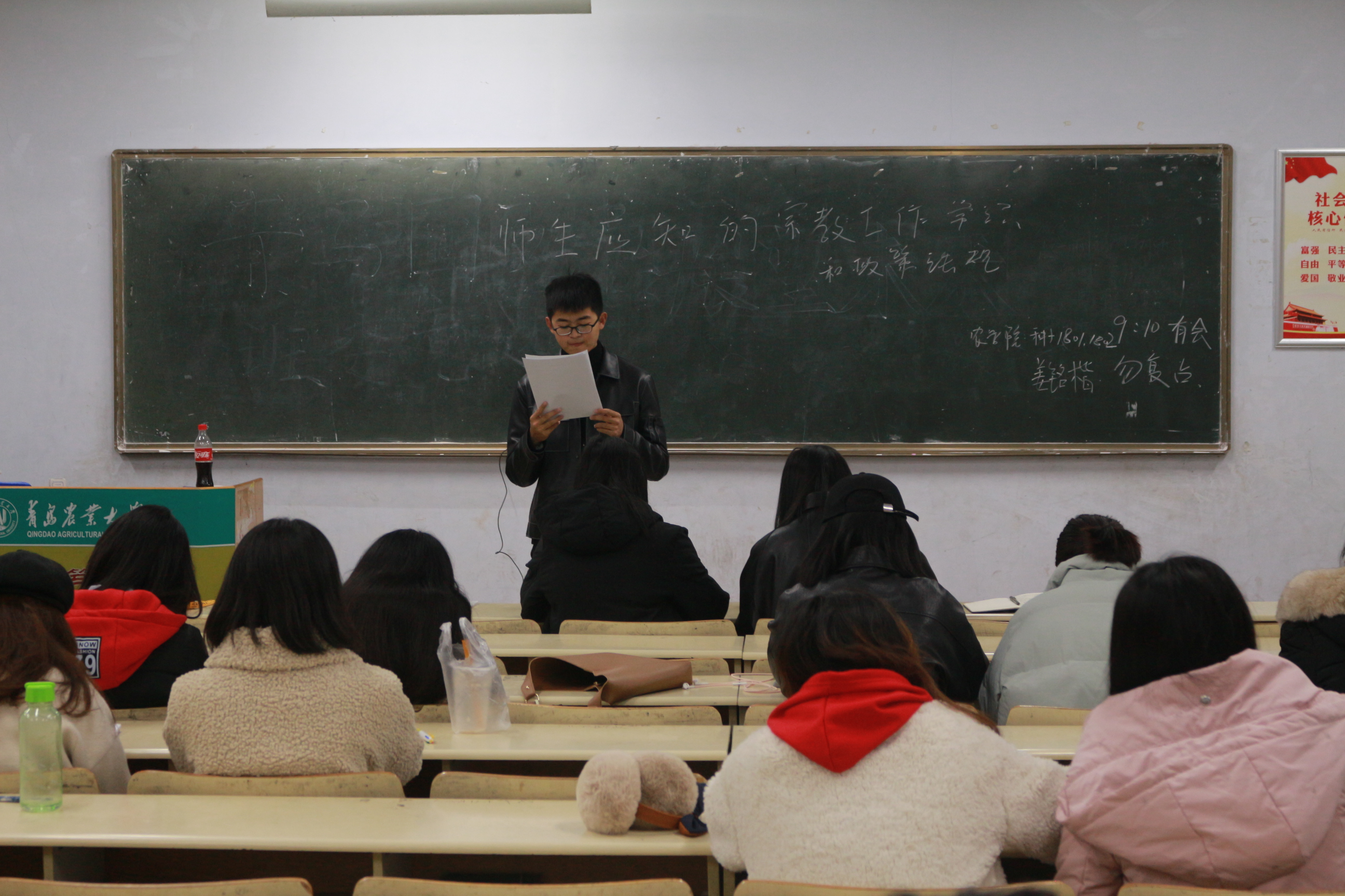 团课伊始,主讲人为同学们解读了宗教的概况、各宗教的基本常识、马克思主义宗教观的基本观点等内容,认真介绍了宗教信仰与邪教的区别,并对相关法律法规进行了解读,使同学们清楚地认识了什么是宗教、什么是邪教。最后,同学们针对“大学生应不应该信仰宗教”这一话题进行了讨论与发言,团课取得了良好的效果。