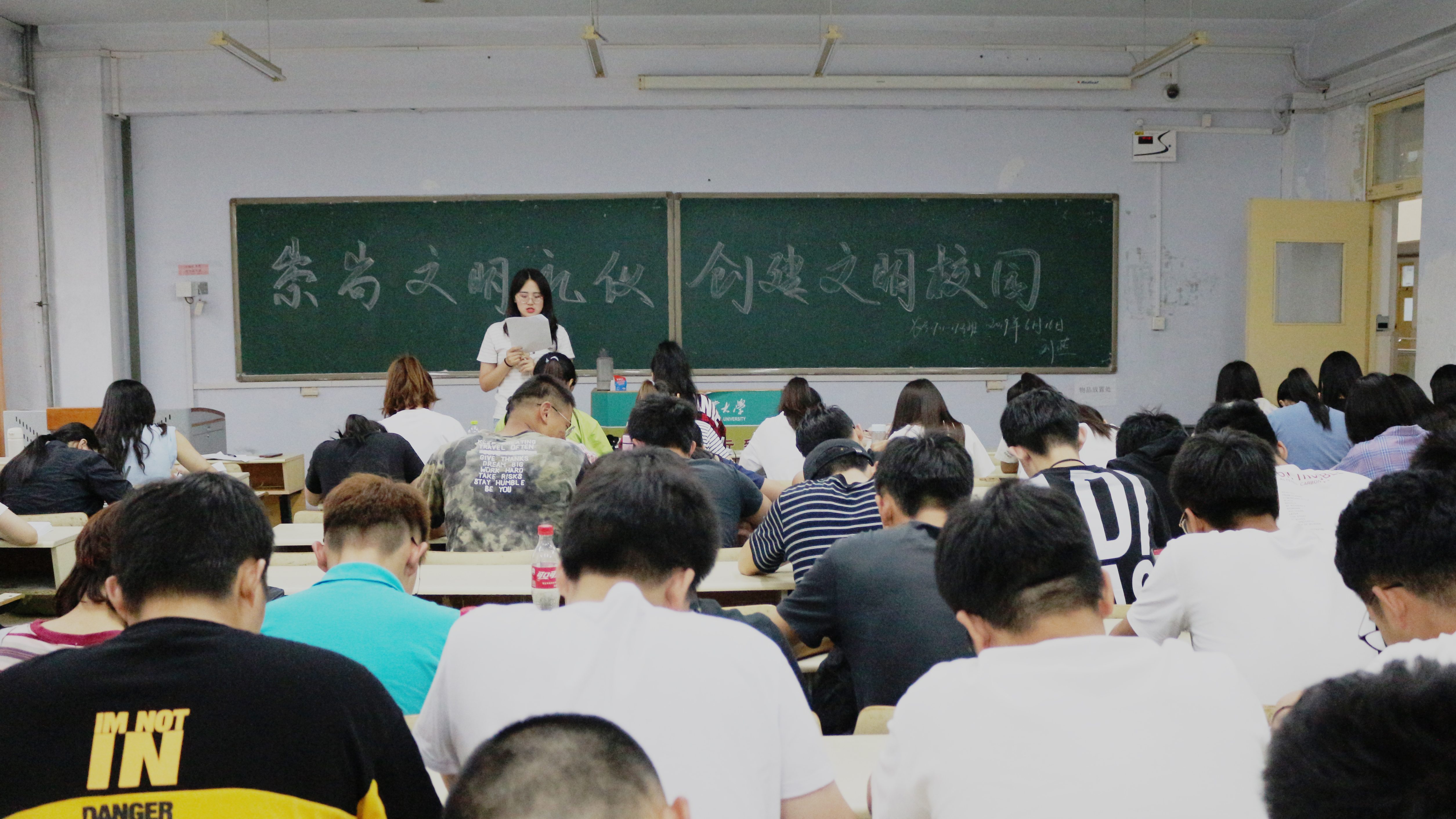 为提高广大团员责任感,树立爱校荣校意识,6月16日,williamhill中国于教学区开展“崇尚文明礼仪,创建文明校园”主题团课,2017、2018级全体团员积极参加。