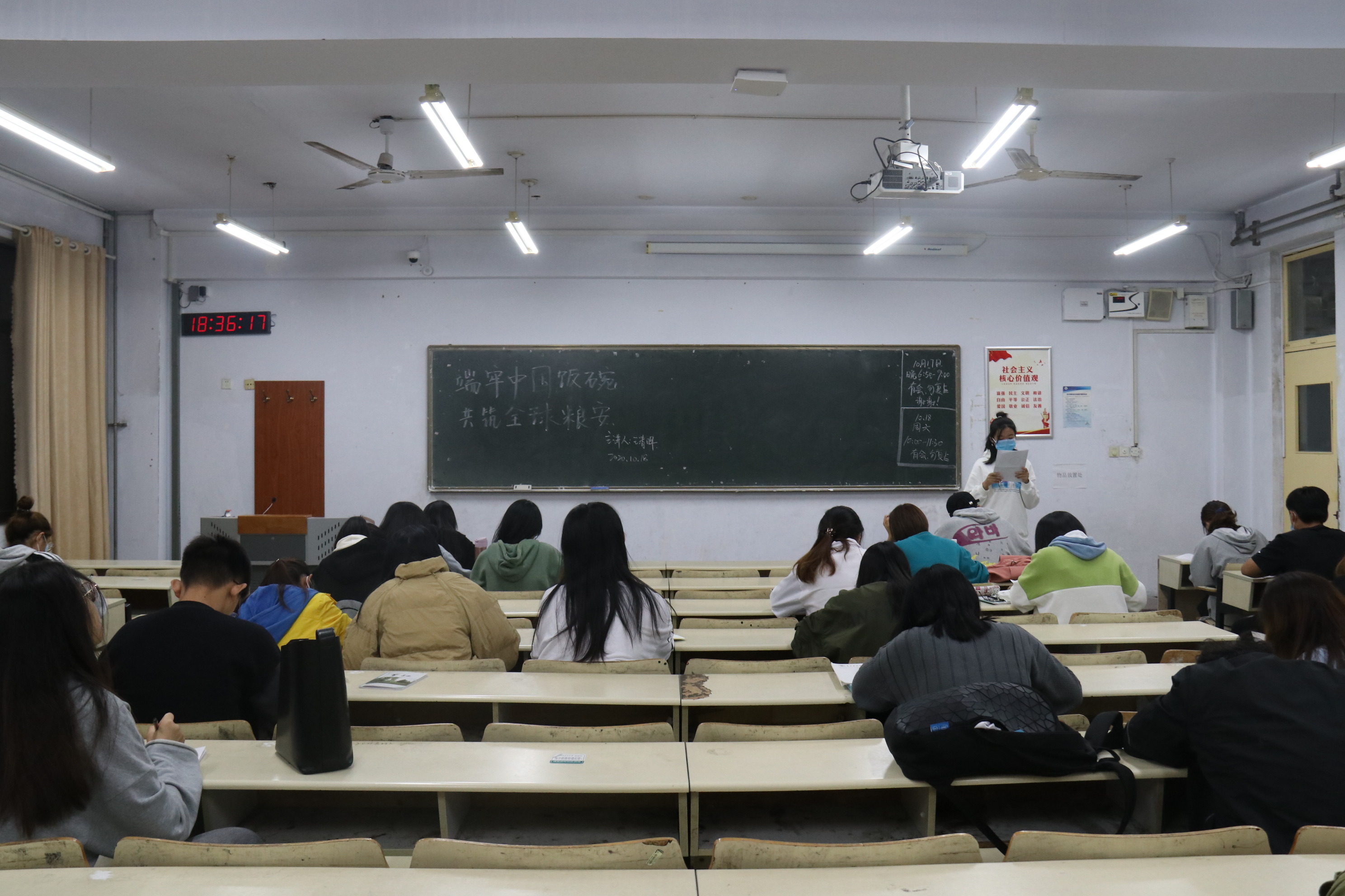 10月18日,williamhill中国于教学区开展“端牢中国饭碗,共筑全球粮安”主题团课,旨在培养学生养成节约粮食的良好习惯,引领文明餐饮新风尚,学院2019级、2020级全体学生参加。