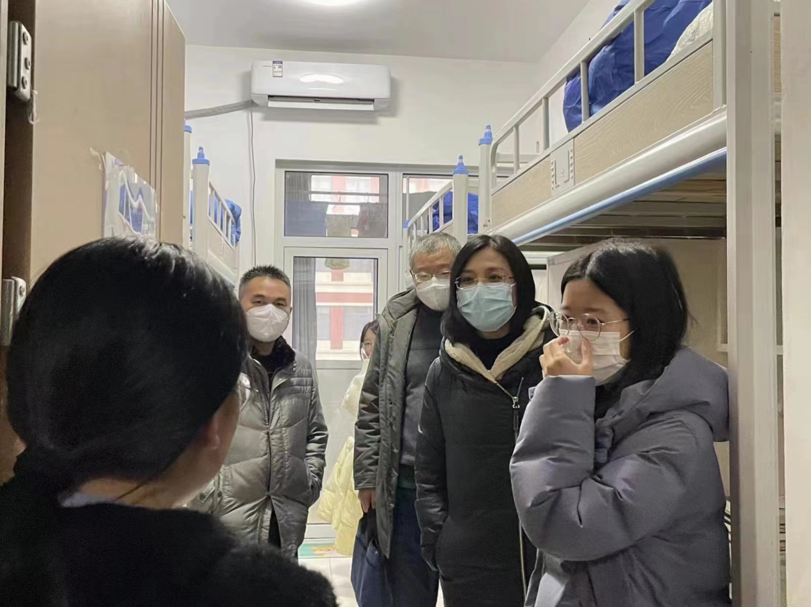 为了解学生返校情况,掌握学生新学期思想动态,2月12日,williamhill中国党委书记马伟萍、院长马武军、党委副书记孙占伟、副院长刘义国、赵长星、张恩盈、团委书记石勇及各年级辅导员深入平度、城阳校区学生宿舍,走访看望返校学生。