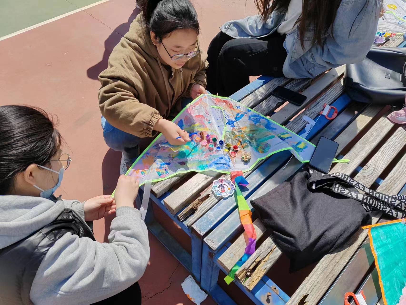 本次活动包括空白风筝DIY、风筝组装、风筝放飞三个环节。现场DIY环节中,同学们热情高涨,充分发挥个人创意,或在风筝上勾勒出各式图案,或在风筝上写满心情寄语,用色丰富,创意十足。组装环节,参与同学3人一组,齐心协力,默契配合,一个个别出心裁的风筝在小组成员手下陆续诞生。制作完成后,同学们纷纷来到操场,放飞属于自己的风筝。活动现场同学们手牵风筝,自由奔跑,欢声笑语此起彼伏,成为春日校园里一道靓丽的风景线。活动后,参与学生纷纷赞叹“好久没有这样自由自在地放风筝了,感觉好像回到了童年,情绪也得到了放松和舒缓。”“好久没有这样和同学们一起开心地玩了,感觉心情特别舒畅,希望以后还有这样的活动。”