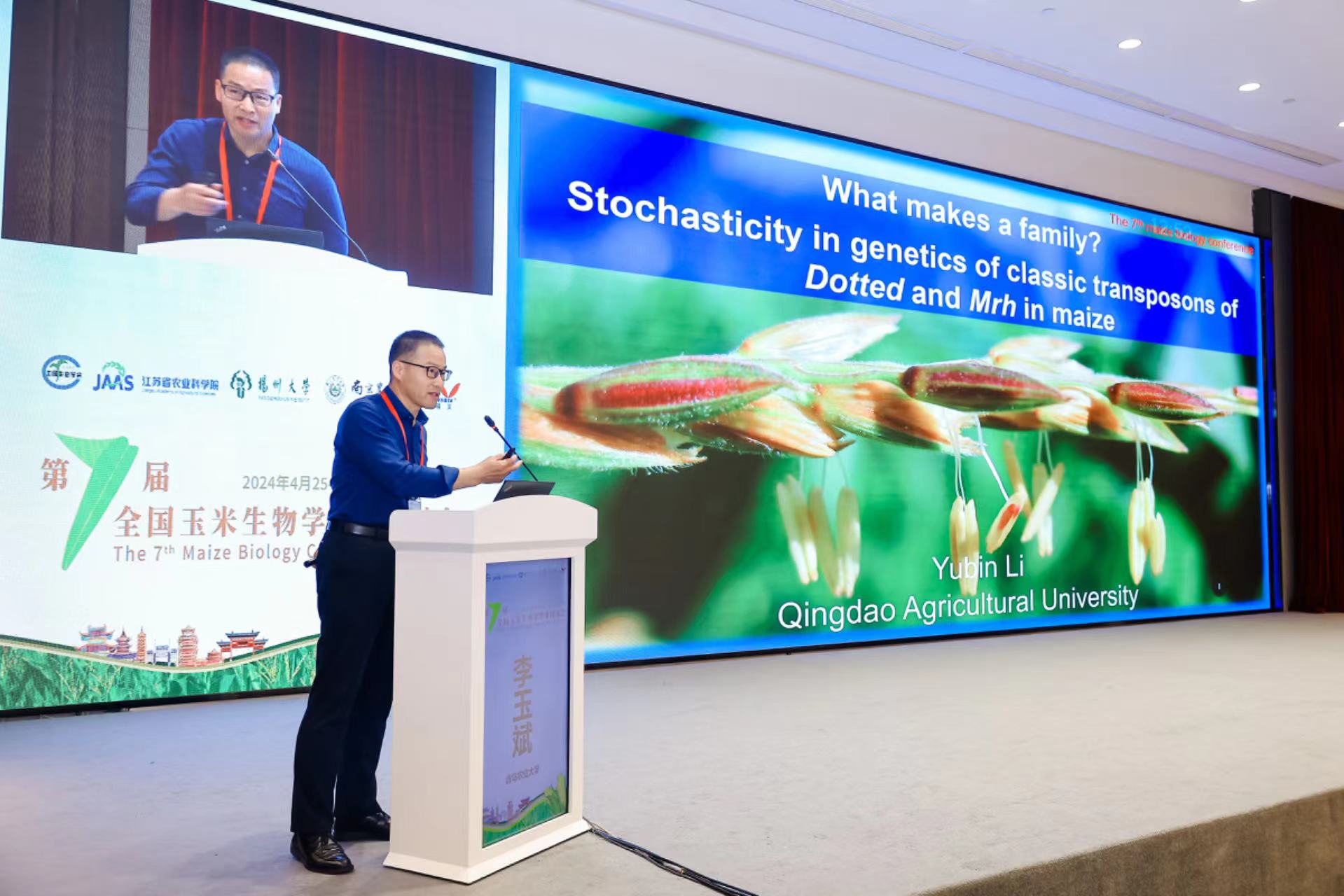 2024年4月25日至28日,第七届全国玉米生物学学术研讨会在江苏省南京市举办。会议由中国作物学会、中国作物学会玉米专业委员会主办,来自全国170余个高校、科研院所及种业企业的800余名代表参加会议。williamhill中国教授李玉斌、副教授裴玉贺及青年教师李朝霞、闫恒宇参加此次会议。