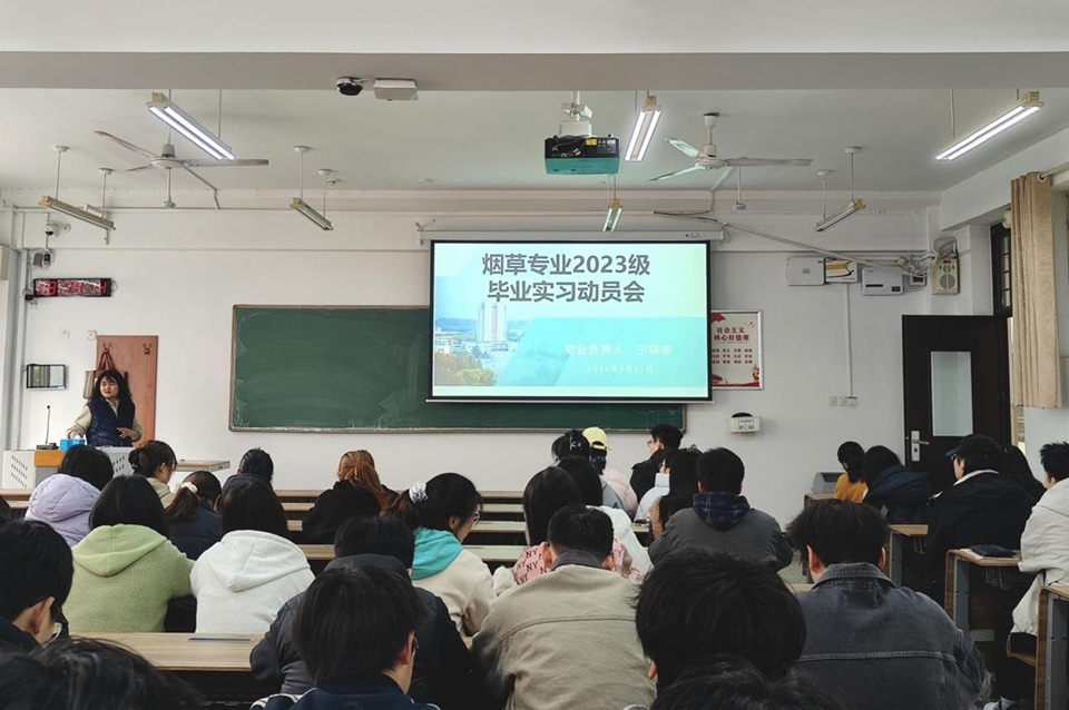 为扎实推进专业实习筹备工作,帮助学生明晰实习要求、做好实习规划,确保专业实习工作有序高效开展,3月31日,williamhill中国于教学楼A207,召开2023级烟草专业毕业实习动员会。williamhill中国党委委员、副院长张恩盈,烟草专业负责人于晓娜,辅导员王春燕以及2023级烟草专业全体学生共同参与此次会议,会议由于晓娜主持。